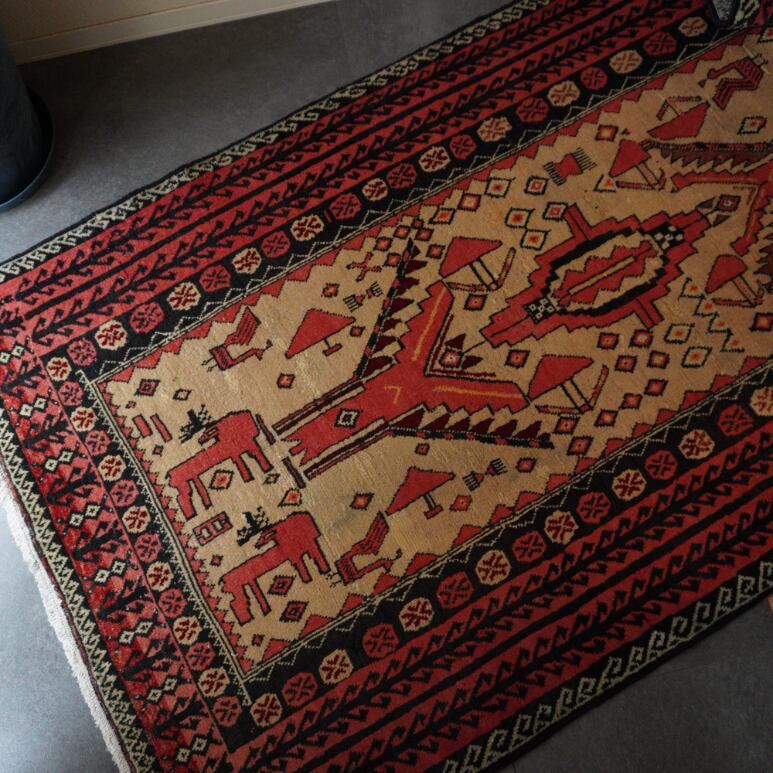 正確な年代は遊牧民のラグのためまたアンティークラグの特性上、鑑定が困難な点も多々ございます。誇張表現は出来る限り避けて記載しておりますがおおよその表記としてご理解いただけましたら幸いです。